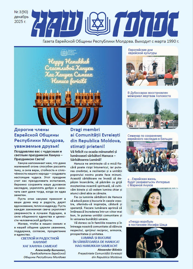 Мы рады представить вам новый выпуск газеты Еврейской Общины Республики Молдова «Наш голос», которая издается с марта 1990 года и распространяется как в электронном, так и в печатном виде на обоих берегах Днестра.
